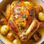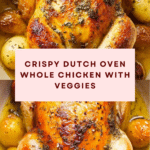 This Dutch Oven Whole Chicken recipe delivers a perfectly roasted bird with crispy skin and tender meat, infused with aromatic herbs and butter. Paired with baby potatoes and carrots, it makes a comforting and hearty meal ideal for family dinners or special occasions.