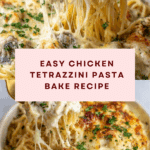 This Easy Chicken Tetrazzini Pasta is a creamy, comforting casserole featuring tender chicken, linguini pasta, and a rich sauce made from cream of chicken soup, sour cream, and chicken broth. Topped with melted mozzarella and Parmesan cheese, it’s baked to golden perfection and perfect for a hearty family dinner.