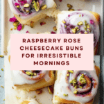 Edd Kimber’s Raspberry and Rose Cheesecake Buns are a delightful treat perfect for blissful mornings. These soft, fluffy buns combine the richness of cream cheese and the fruity sweetness of raspberry jam, enhanced with fragrant rose water and a decorative touch of edible rose petals and pistachios. Ideal for breakfast or teatime, these homemade buns offer a luxurious flavor and beautiful presentation.