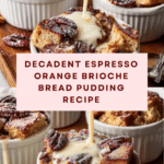 This Espresso Orange Brioche Bread Pudding is a luxurious twist on a classic comfort dessert. With a rich custard infused with coffee, cinnamon, and orange zest, it’s paired perfectly with a creamy hazelnut vanilla sauce for an unforgettable treat.