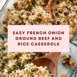 Keywords: French onion casserole, ground beef casserole, baked rice dish, comfort food, easy casserole