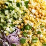 This Fresh & Healthy Cilantro Lime Pasta Salad is a vibrant and creamy dish perfect for a light lunch or a refreshing side. Featuring a super creamy Greek Yogurt Avocado dressing loaded with cilantro and lime, this salad combines cooked pasta, chickpeas, corn, cucumber, red onion, and feta cheese for a well-balanced, flavorful meal that’s quick to prepare and delightfully satisfying.