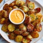 Tender baby red potatoes roasted to golden perfection with a flavorful garlic butter parmesan coating, seasoned with Italian herbs and topped with fresh parsley and optional crispy bacon bits. This delicious side dish pairs beautifully with any meal and is easy to prepare using a simple oven roasting method.