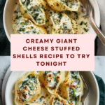 Giant Cheese Stuffed Shells are a comforting and impressive pasta dish perfect for weeknight dinners or special occasions. Jumbo pasta shells are filled with a creamy blend of ricotta, mozzarella, parmesan, and spinach, then baked in a rich homemade Alfredo sauce until bubbly and golden.