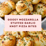 Keywords: garlic knot pizza bites, stuffed pizza bites, mozzarella bites, garlic butter pizza snacks, cheesy appetizers, party snacks