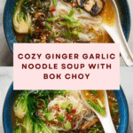 A comforting and flavorful Ginger Garlic Noodle Soup with Bok Choy, combining aromatic shallots, fresh ginger, garlic, tender bok choy, and mushrooms in a savory broth with rice noodles. This easy-to-make soup is perfect for a light meal or cozy dinner and can be adapted for vegan and gluten-free diets.