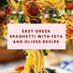 A vibrant and fresh Greek Spaghetti recipe featuring sautéed cherry tomatoes, spinach, kalamata olives, and crumbled feta cheese tossed with perfectly cooked spaghetti. This dish combines Mediterranean flavors with a tangy lemon and red wine vinegar dressing for a light, flavorful meal that’s easy to prepare and perfect for weeknight dinners.