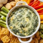This Greek Yogurt Spinach Dip is a creamy, cheesy appetizer perfect for parties or casual snacking. Fresh spinach is sautéed with onions and garlic, then combined with Greek yogurt, reduced-fat mayonnaise, and a blend of parmesan and mozzarella cheeses. Baked until bubbly and golden, it offers a rich yet lighter alternative to traditional spinach dips.