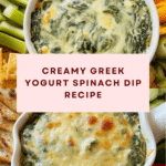 This Greek Yogurt Spinach Dip is a creamy, flavorful appetizer that’s perfect for any gathering. Made with fresh spinach, tangy Greek yogurt, and a blend of cheeses, it’s both comforting and healthy. Serve it warm with crackers or fresh bread for an irresistible snack.
