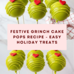 These Grinch Cake Pops are a festive and fun treat perfect for holiday gatherings. Made with red velvet cake and vibrant green candy coating, they are sure to impress both kids and adults alike. Plus, they’re easy to make and great for sharing.