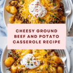 Keywords: ground beef casserole, potato casserole, cheesy ground beef bake, beef and potatoes recipe, easy casserole