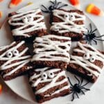 These Halloween Mummy Brownies are a spooky and delicious treat perfect for the fall season. Rich, fudgy brownies are topped with a creamy white chocolate and cream cheese frosting piped like mummy bandages, complete with cute candy eyes for a fun and festive look. Made with whole wheat or all-purpose flour and cocoa, these brownies offer a delightful combination of fudgy texture and sweet, creamy topping that’s sure to impress at any Halloween gathering.