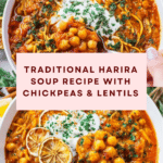 Keywords: Harira soup, Moroccan soup, lentil soup, chickpea soup, healthy vegan soup, traditional Moroccan recipe, comforting soup