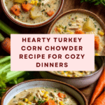 This Hearty Turkey Corn Chowder is a comforting and flavorful soup that’s perfect for using up leftover turkey. Packed with tender potatoes, sweet corn, and a creamy broth, it’s an easy meal to warm you on chilly days.