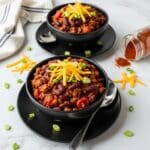 - Step 5: Serve the chili hot, topped with shredded cheese, green onions, sour cream, or your favorite chili garnishes.