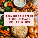 This Hibachi Steak & Shrimp Plate brings the flavors of a Japanese steakhouse right to your kitchen. Featuring tender steak, juicy shrimp, garlicky fried rice, and sautéed veggies, it’s a complete, satisfying meal. Add a creamy dipping sauce for the perfect finishing touch.