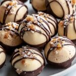 - Final freeze: Place the coated bites back onto a tray or parchment-lined plate and freeze for an additional 30 minutes to allow the chocolate to harden completely.