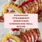 This Homemade Strawberry Shortcake Cheesecake is a delightful dessert combining a light strawberry sponge cake rolled around a rich cheesecake filling. Topped with a crunchy strawberry shortcake crumble and fresh strawberries, it’s perfect for summer celebrations or any special occasion.