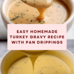 This homemade turkey gravy recipe uses flavorful pan drippings from your roasted turkey, combined with fresh herbs and a touch of white wine, to create a rich, savory sauce perfect for enhancing your holiday meals or any turkey dinner.