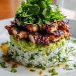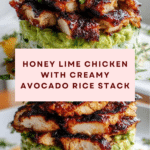 A vibrant and flavorful Honey Lime Chicken & Avocado Rice Stack, combining tender grilled chicken marinated in a zesty honey-lime mixture with creamy avocado and fragrant cilantro rice. This dish offers a perfect balance of sweet, tangy, and fresh flavors, ideal for a healthy and satisfying meal.