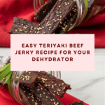 Learn how to make delicious homemade Teriyaki Beef Jerky using a dehydrator. This easy recipe features thinly sliced top round beef marinated in a flavorful blend of soy sauce, sesame oil, brown sugar, pineapple juice, garlic, and ginger, then dried to perfection. Enjoy a perfect balance of sweet and savory flavors in this protein-packed snack that’s great for on-the-go or anytime craving.