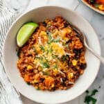 Keywords: Instant Pot, burrito bowl, vegan, quick dinner, black beans, rice, Mexican, healthy, one-pot meal