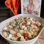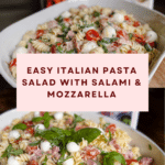 Keywords: Italian pasta salad, radiator pasta, salami pasta salad, marinated mozzarella salad, easy pasta salad recipe, summer salad, picnic salad, potluck recipe