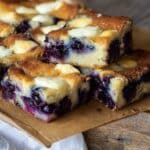 - Step 6: Transfer the batter into the prepared pan. Evenly spread the coated blueberries on top, then scatter the cream cheese cubes over the berries.