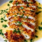 A flavorful Lemon Parmesan Crusted Chicken served with a rich and creamy garlic sauce, perfectly pan-fried to golden brown. This dish combines zesty lemon, savory Parmesan, and a luscious cream sauce for an elegant yet simple meal.
