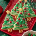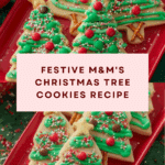 Keywords: Christmas cookies, M&M’S cookies, holiday baking, festive cookies, royal icing, Christmas tree cookies, pretzel trunk