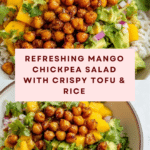 Keywords: mango chickpea salad, vegan salad bowl, crispy chickpeas, baked tofu, mango avocado salad, healthy vegan recipe, gluten-free vegan bowl