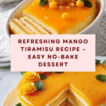 This Mango Tiramisu is a refreshing tropical twist on the classic Italian dessert, combining creamy mascarpone, luscious mango pulp, and delicate ladyfingers. Perfectly layered and chilled, it offers a luscious blend of sweet, creamy, and fruity flavors that will impress as a show-stopping dessert for any occasion.