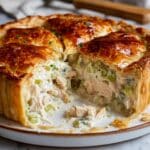 This Mary Berry Chicken and Leek Pie is a comforting classic, perfect for a cozy dinner. Tender chicken and soft leeks swim in a creamy sauce, all encased in golden, flaky puff pastry.