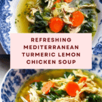 A vibrant and healthy Mediterranean-style turmeric lemon chicken soup packed with tender shredded chicken, fresh herbs, and warm spices like turmeric and Aleppo pepper. This comforting yet refreshing soup combines the bright flavors of lemon and fresh greens with a nourishing broth, perfect for a cozy meal that’s both flavorful and wholesome.