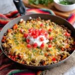 This Mexican Cauliflower Rice recipe is a flavorful, low-carb spin on traditional Mexican rice, combining lean ground beef, vibrant vegetables, and savory taco seasoning with nutritious cauliflower rice. It’s a quick and easy skillet meal perfect for a healthy weeknight dinner, topped with melted cheddar cheese and customizable garnishes like sour cream and avocado.