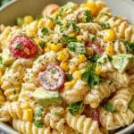 Keywords: Mexican Street Corn Pasta Salad, pasta salad, Mexican pasta salad, cotija cheese pasta, summer salad, creamy pasta salad, rotini salad