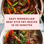 Keywords: Mongolian Beef, stir-fry beef, quick beef recipe, Asian stir fry, flank steak recipe, beef and vegetables, savory sweet sauce