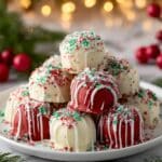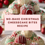 These No-Bake Christmas Cheesecake Bites are a festive and easy-to-make treat perfect for holiday gatherings. Creamy, sweet, and coated in colorful candy melts with sprinkles, they’re sure to delight both kids and adults alike.