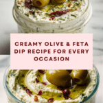 Keywords: olive dip, feta cheese dip, Mediterranean appetizer, creamy dip, feta dip, green olive spread, roasted red pepper dip, easy party dip, healthy snack