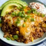 This One Pot Burrito Bake is a flavorful and easy-to-make meal combining ground beef, spices, rice, beans, and corn all cooked together in a single pot. Topped with melted cheese and fresh scallions, it’s perfect for a comforting weeknight dinner served with creamy avocado, sour cream, and fresh cilantro.