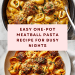 This one-pot Meatball Pasta is a comforting and flavorful meal that’s perfect for busy weeknights. Tender baked meatballs combine with a rich tomato sauce and cheesy pasta, all cooked together for easy cleanup and maximum taste.