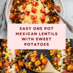 Keywords: Mexican lentils, one pot meal, vegetarian lentils, sweet potatoes, black beans, easy dinner, healthy lentil recipe