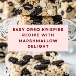 Oreo Krispies are a delicious twist on classic rice krispie treats, combining crispy cereal, crushed Oreo cookies, and gooey marshmallows for a sweet, chewy, and chocolatey dessert bar that’s perfect for any occasion.