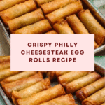 A delicious twist on the classic Philly cheesesteak, these Philly Cheesesteak Egg Rolls combine tender rib-eye steak, sautéed peppers and onions, and melted provolone cheese wrapped in crispy fried egg roll wrappers. Perfect as a snack or appetizer, they offer the familiar flavors of a cheesesteak in a fun handheld form.