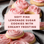 Keywords: Pink lemonade cookies, lemon cookies, lemon frosting, pink sugar cookies, soft cookies, lemon dessert