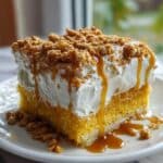 This Pumpkin Better Than Sex Cake is a decadent, moist dessert that combines the rich flavors of pumpkin and caramel with a creamy whipped topping and crunchy Heath bits. Easy to prepare, it’s perfect for holiday gatherings or anytime you want to impress with minimal effort.