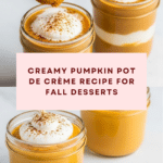 This Pumpkin Pot de Crème is a rich, creamy custard dessert infused with warm fall spices and pumpkin puree, baked gently in a water bath for the perfect silky texture. Finished with a dollop of maple-flavored whipped cream, it offers an indulgent yet seasonal treat that’s ideal for cozy gatherings or holiday celebrations.