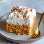 - Serve: Remove the cake from the refrigerator, spread the whipped cream evenly over the top, and sprinkle with cinnamon or pumpkin pie spice for garnish. Serve chilled and enjoy!