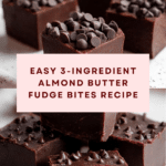 Keywords: almond butter fudge, 3 ingredient fudge, no bake fudge bites, easy fudge recipe, gluten free fudge, quick dessert