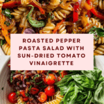 This Roast Pepper Pasta Salad is a vibrant, flavorful dish perfect for summer lunches or dinner sides. Roasting the mini sweet peppers, cherry tomatoes, shallots, and garlic brings out a smoky sweetness that pairs beautifully with a zesty lemon and sun-dried tomato dressing.
